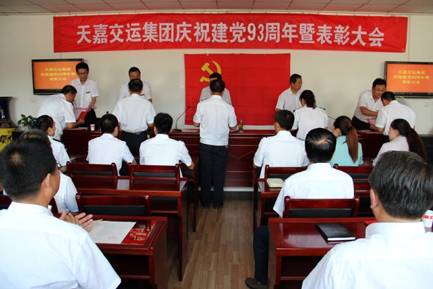 7月1日,天嘉集团党委,在公司三楼会议室隆重召开庆祝中国共产党成立93周年暨表彰大会,会上回顾了党的光辉历程,缅怀党的丰功伟绩,总结成绩,表彰先进。集团公司党委书记董事长黄明生、集团公司党委委员、基层各单位党政负责人以及受表彰的先进组织代表、优秀党员、以及新发展的党员,共70余人参加了会议。大会由集团公司党委副书记许福安主持。